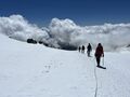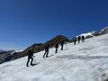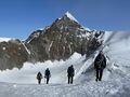 Für den ersten Tourentag stand die Vincent Pyramide mit 4.215m auf dem Programm, die die DAV-ler in zwei Seilschaften bezwungen haben – die Distanz war mit 2,5 km nicht weit, jedoch ist Gehen in dieser Höhe sehr viel anstrengender als Zuhause und zudem mussten mit Steigeisen an den Beinen auch 600 Höhenmeter überwunden werden. Für einige Teilnehmer war die Vincent-Pyramide ein besonderes Highlight: der erste 4.000er! Glückwunsch!