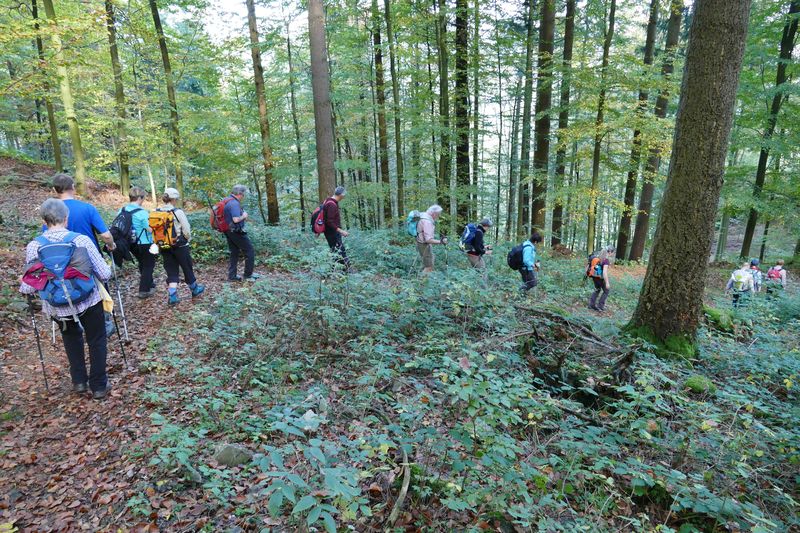 Über den Katzensteig, Schwalbenstein-Brunnen und auf schönen naturbelassenen Pfaden führte der Wanderweg zur Schwalbenstein-Hütte und zum Schwalbenstein Denkmal. Bei diesem Husarendenkmal hat man auch eine schöne Aussicht ins Tal. Weiter ging es zur eigenartigen Felsformation des Rappenschroffen , mit Blick ins Simmersbacher Tal. Durch Nadel- und Mischwald mit großen Pilzvorkommen führte der Weg hinauf auf den Sohlberg mit seinen 780 m.