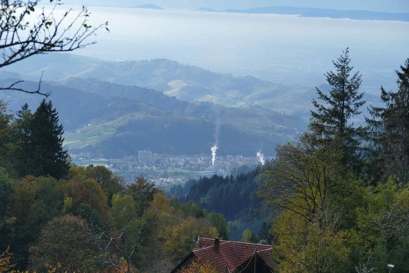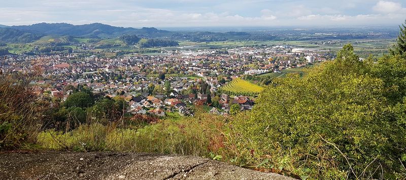 Vom Burghof aus, hat man eine herrliche Aussicht auf Oberkirch und ins Renchtal. In der Ferne konnten wir auch den Startpunkt der 1. Renchtalsteig Etappe, den Ort Bottenau mit der St. Wendelinskappele sehen.