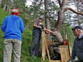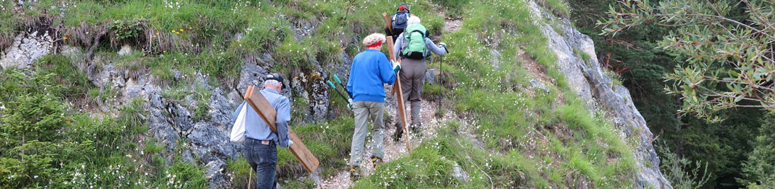 Auch in diesem Jahr war die Teilnahme an der Aktion Schutzwald wieder ein voller Erfolg. Unser Vorarbeiter Sepp holte uns am Bahnhof in Klais bei Mittenwald ab und brachte uns zu unserer Unterkunft, der Wagenbrücharbeiterhütte. Wir waren allerdings nicht die einzigen Gäste in der Hütte: Am dritten Morgen zeigte sich ein weiterer Mitbewohner, der schon eine Gebäckdose heruntergeworfen und alles angeknabbert hatte: ein Siebenschläfer. Er wurde immer zutraulicher, ließ auch mit sich reden, befolgte unsere Anweisungen aber nicht und machte sich auch an den aufgehängten Stoffbeutel mit den Brotvorräten heran.