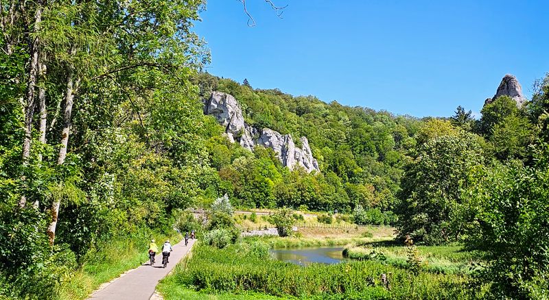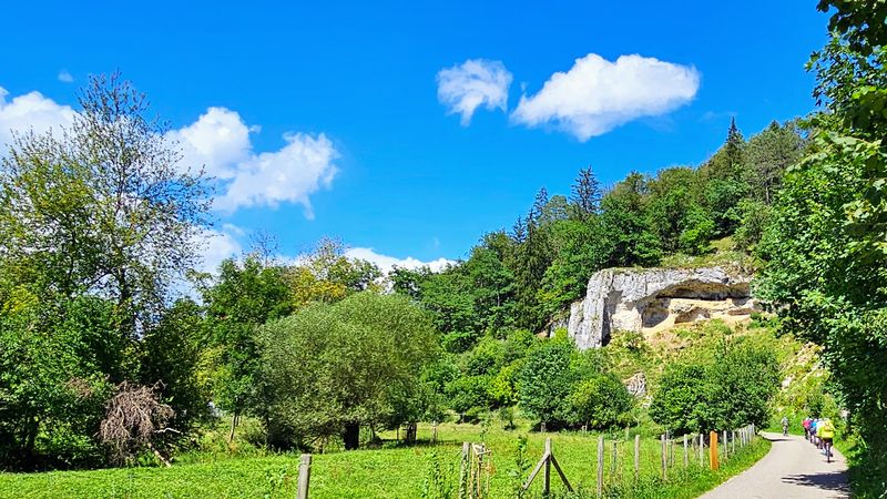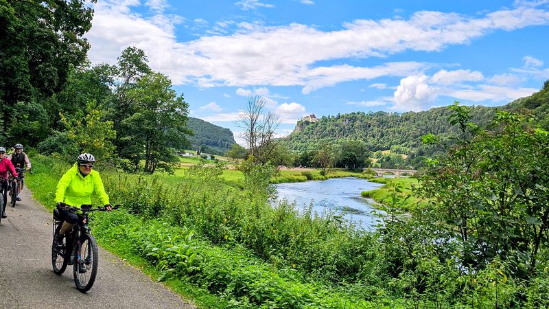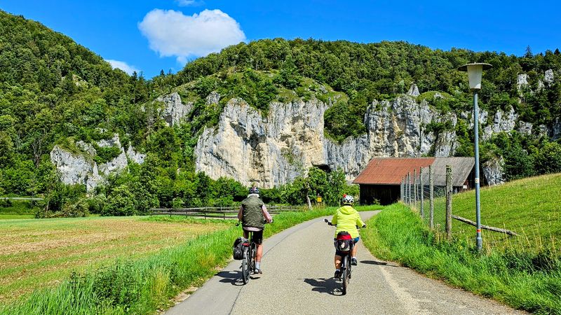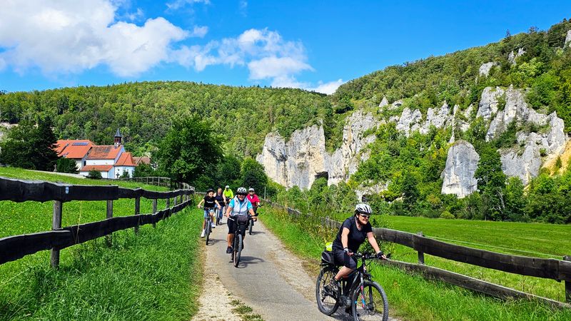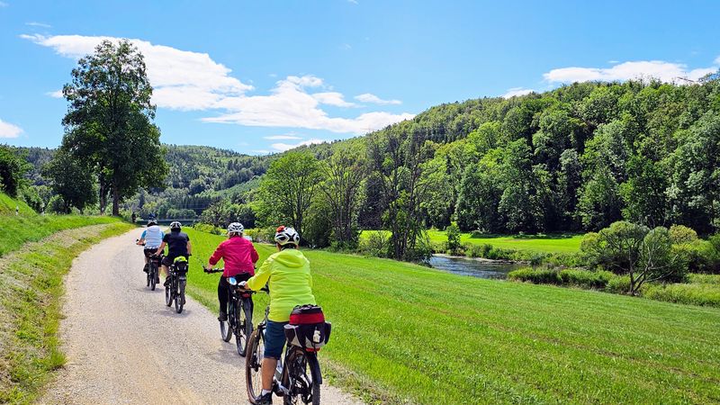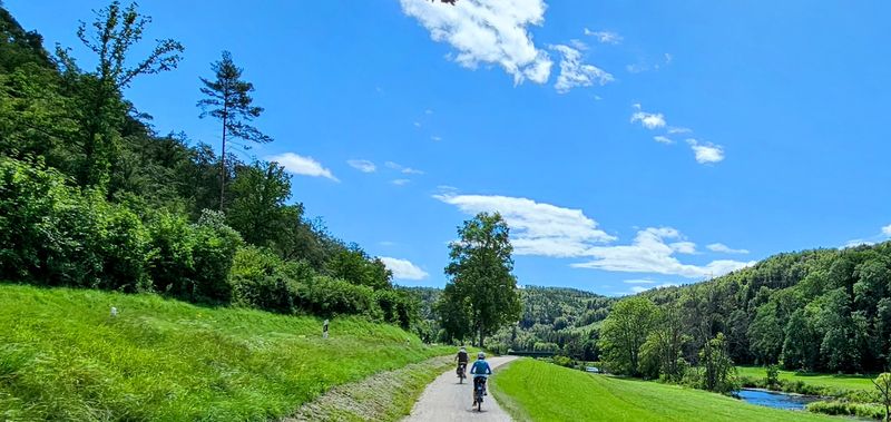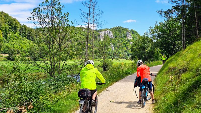Ab Hausen im Tal folgte nun eine „Genuss-Radtour“ von seiner schönsten Seite. Der Donautalradweg zählt hier als einer der schönsten Radwegetappen Europas. Und dieser präsentierte sich unseren Radlern von seiner schönsten und sonnigsten Seite. Durch sattgrüne Wiesen schlängelt sich hier die blaue Donau, beidseitig begrenzt durch steile Laubwälder und Felswände.