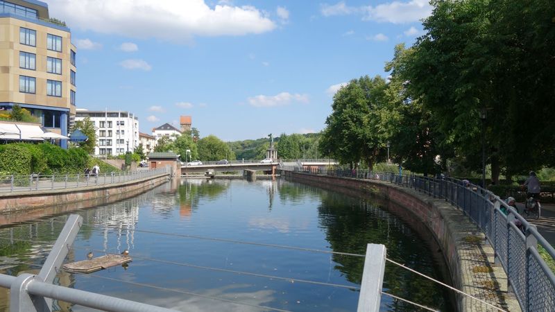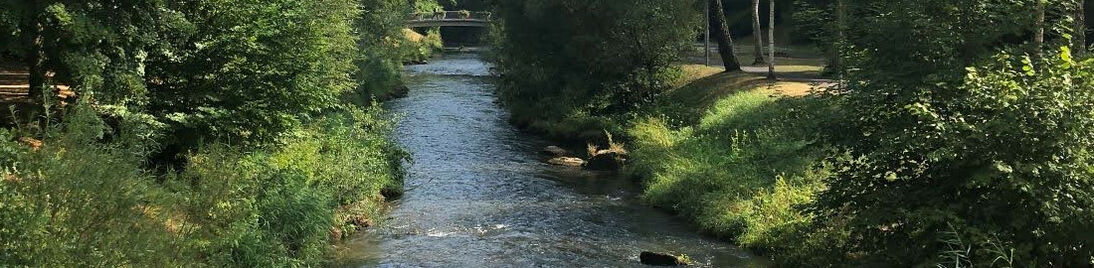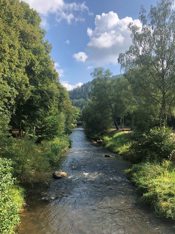 Dann folgte eine lange und rasante Abfahrt das Größeltal hinunter ins Enztal. Hier leitete der Enztal-Radweg immer der Enz entlang durch Pforzheim bis zur Einmündung der Nagold.