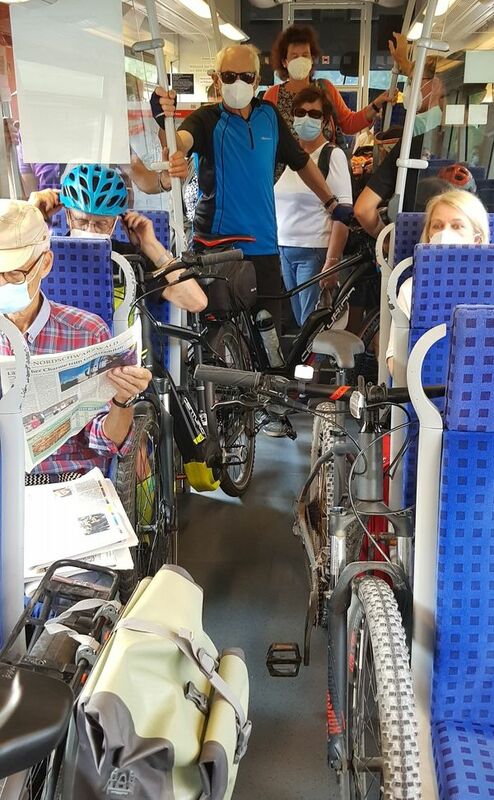 Die Senioren-Radler des Alpenvereins Calw + Nagold waren am 16.8.2022 wieder auf Radeltour. Die umweltfreundliche Anreise war für einige Teilnehmer in der Kulturbahn etwas eingeengt.