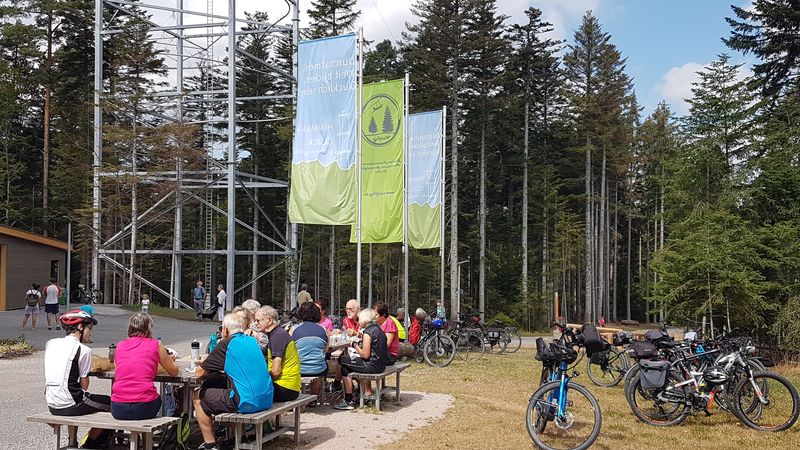 Nach Langenbrand ging die Route gen Norden hinüber in den Enzkreis zur Büchenbronner Höhe.. Von dem historischen Aussichtsturm aus genoss man ein 360° Rundum-Panorama-Aussicht vom Pfälzer-Wald über Pforzheim, dem Strom- und Heuchelberg und dem nahen Schwarzwald.