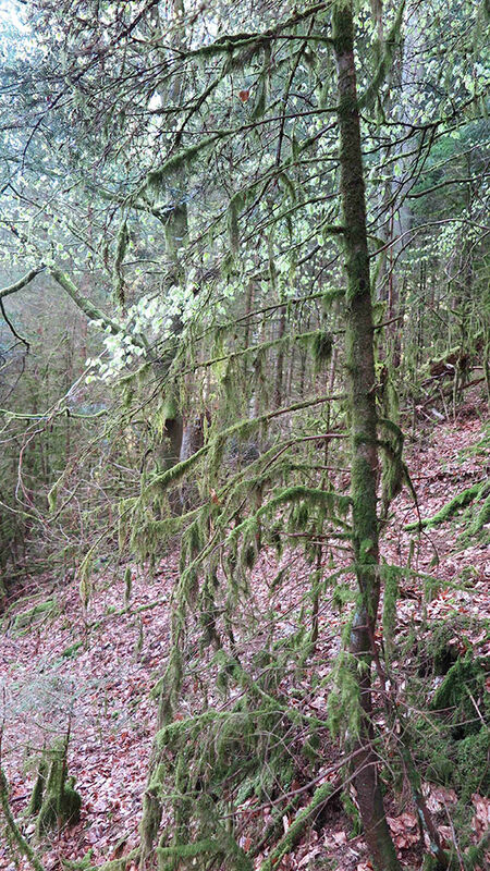 Dort umgab uns ein Wald der durch die Bartflechten, die an den Bäumen lang herunterhängen, ein fast märchenhaftes Aussehen hat.