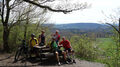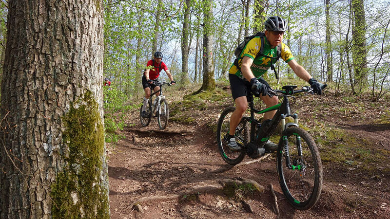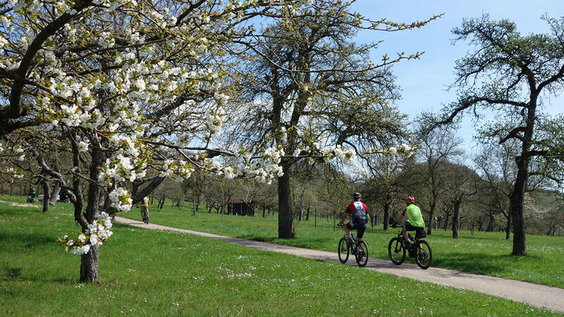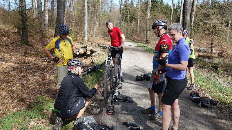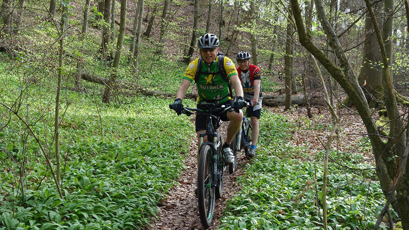 Das Frühlingswetter meinte es gut mit den Mountainbikern. 7 Teilnehmer nutzten die idealen Bedingungen bei bis zu 22 °C. Die Ausfahrt am 14.4.2018 führte durch die Singletrails im Strom- und Heuchelberg. In dem milden, durch Weinbau bekannten Gebiet war die Vegetation mit üppiger Blütenpracht schon weiter fortgeschritten. Nach der Durchfahrt durch die Altstadt von Mühlacker führte die Tour auf dem Schanzenwall der „Eppinger Linie“ in Richtung Maulbronn. Der mit groben Wurzeln durchsetzter Trail forderte schon nach wenigen Kilometer ihren Tribut. Das Schaltauge eines Teilnehmers war abgebrochen was leider für diesen das vorzeitige Aus bedeutete. Durch blühende Baumwiesen und Weinberge ging es durch Zaisersweiher und Diefenbach in Richtung Sternenfels. Ein Trauf-Pfad führte über dem steilen Abbruch des Stromberg hoch über dem Zabergäu in Richtung Osten nach Ochsenbach und Hohenhaslach. Von Horrheim ging es steil hinauf auf den Eselsberg. Von hier führte ein langer Singletrail über den Höhenrücken hinüber nach Lienzingen und Mühlacker. Dabei genoss man immer wieder schöne Weitblicke vom Schwäbischen-Wald über den Schwarzwald bis zum Pfälzer-Wald. Nach 70 km und 1.300 Höhenmetern gab es die verdiente Schluss-Einkehr. Ein besonderer Genuss in der Abendsonne auf der EssENZ-Terrasse direkt an der Enz mit Blick auf die Burgruine Löffelstelz.