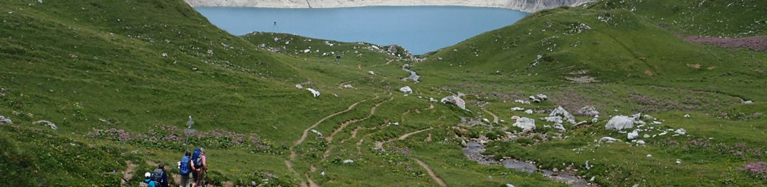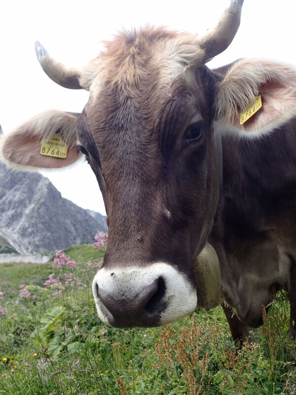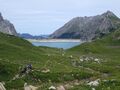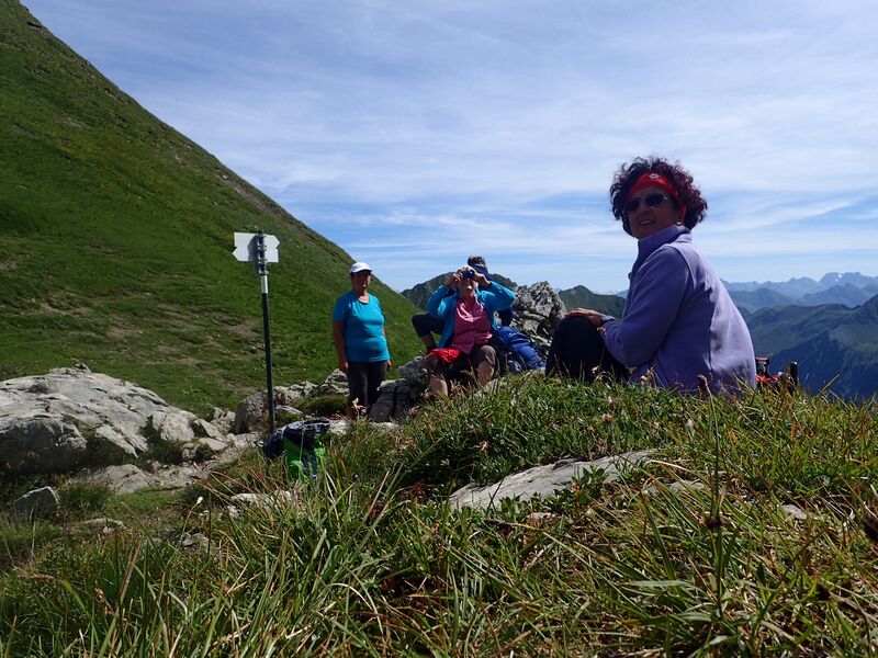 Am nächsten Morgen hatten wir wieder super Bergwetter, und so haben wir nach dem Frühstück in aller Ruhe das Alpengärtchen bestaunt. Um 9.00 ging es dann bei strahlend blauem Himmel hinauf zum Öfa Pass, am Schweizer Tor vorbei und zum Lüner See. Auf der Lüner Seealpe haben wir bei Live Musik und Buttermilch Mittagspause gemacht, und dabei die Ziegen beobachtet.