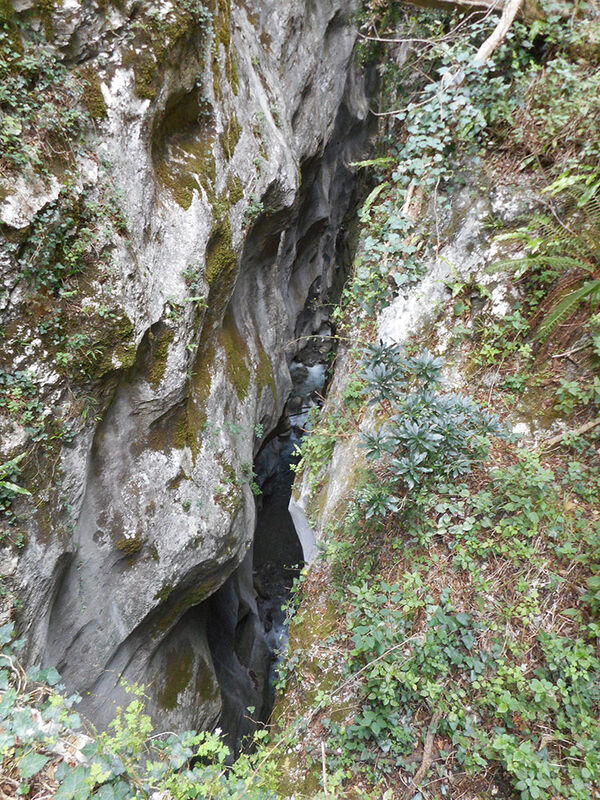 Der Weiterweg führt uns nach Prabione. Von hier erfolgt der Abstieg bis zum Il Ponticello in der Schlucht von T.S. Michelle. Bei der historischen alten Rundbogenbrücke geht der Blick noch tief weiter abwärts bis zum Wasser. Hier kann man wieder die Urgewalten der Wasserkraft bewundern die in Jahrhunderten sich den Weg tief in die Felsen gegraben haben.