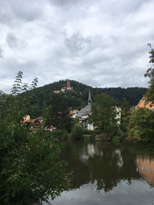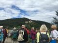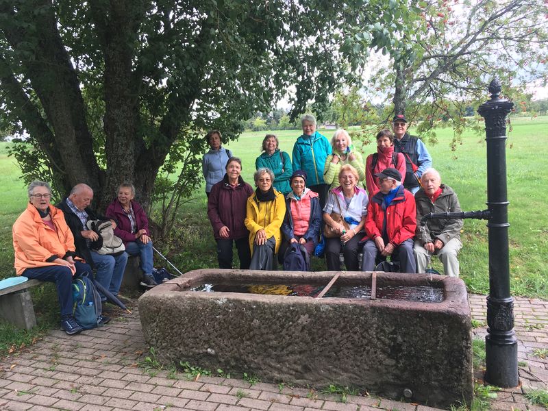 Die Kulturbahn brachte uns zum Ausgangspunkt. Nach einem Abstecher über den Missionsberg, mit schönem Blick auf die Burg gegenüber, gelangten wir auf einem schmalen Pfad hinunter ins Lengenbachtal, wodurch wir ein langes Stück Asphaltweg vermieden. Dann ging es stetig das recht naturbelassene Lengenbachtal aufwärts. Manchmal sah, manchmal hörte man den Bach, oft verbarg er sich hinter Gesträuch. Nach der Maisenbacher Sägemühle verließen wir bald das eigentliche Lengenbachtal und wandten uns mit einer letzten Steigung durch dichten Wald dem Höhendorf Maisenbach zu. Eine kleine Rast an einem malerischen Brunnen kurz vor dem Ortseingang, ein kurzes Stück die Dorfstraße entlang, dann bogen wir ab auf das letzte Stück Höhe oberhalb des Dorfes. Danach ging es nur noch bergab, hinunter ins Kollbachtal. Das Kollbachtal wanderten wir auf der weniger begangenen, aber deutlich naturbelasseneren linken Seite hinab. Erst am Kollbacher Brückle stießen wir auf den bekannten Wag auf der rechten Talseite. Ab dann ging es den üblichen Weg weiter, vorbei an der Sprudel-Abfüll-Fabrik und über die Bundesstraße in den Kurpark. Für die Schlusseinkehr waren wir zuvorkommend und sehr lecker in der Pinea Pastaria in der Therme aufgehoben.