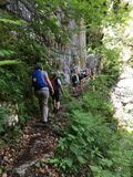 Über Kranjska Gora und den Vrsicpass, erreichten wir den Startpunkt zu unserer Ganztagestour im Socatal, von der Quelle bis nach Bovec. Die beeindruckende Siphonquelle mit tiefblauem Auge wurde über eine kleine Kletterei erreicht. Die Wegstrecke über 23 km war sehr abwechslungsreich. Der Soca-Wanderweg führte über einige Hängebrücken und an manchen Stellen war die Schlucht weniger als 2 Meter breit und grub sich über 15 m tief durch die Felsen.