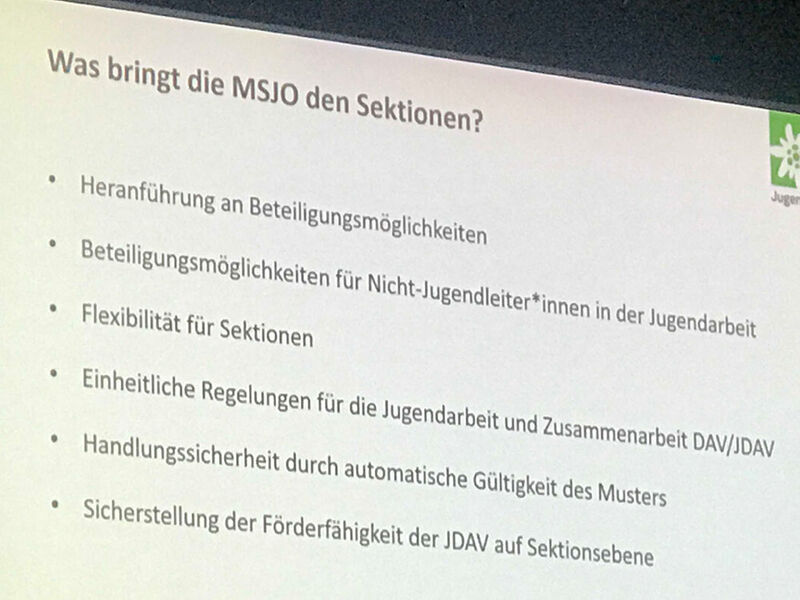 Als weitere bedeutende Beschlüsse wurde die neue Mustersektionsjugendordnung sowie ein vollständiger Verzicht auf Automobilwerbung in allen Medien des Alpenverein beschlossen.