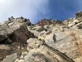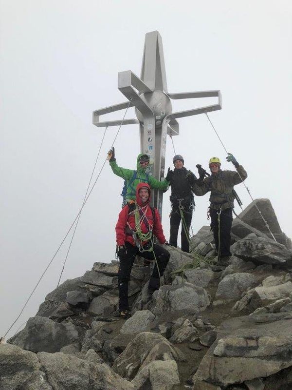 Über den Aperer Pfaff und Sulzenauferner in Richtung „Wilder Pfaff“, sowie den Ostfirngrat bestieg die Seilschaft in exponierter Felskletterei, 2ten UIAA-Grad, den 3507m ü.A. hohen Gipfel des Zuckerhütl gegen 9.30 Uhr.