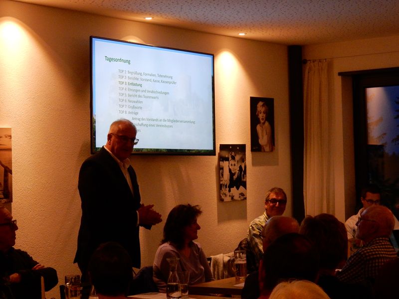 Der neue zweite Vorsitzende Michael Adrion grüßt die Versammlung und stellte sich in einigen Worten kurz vor. Thomas Pag, 1.Vorsitzender der Sektion Böblingen, dankt ebenso für die Einladung und erzählte eine Anekdote über das Kennenlernen der Sektion noch vor der Gründung und freut sich weiterhin über das gute Miteinander. Unter dem Punkt Anträge wurde die Anschaffung eines Vereinsbusses aufgrund der Krankheit des 1.Vorsitzenden Sven Rahlfs auf eine außerordentliche Mitgliederversammlung im Laufe des Jahres vertagt, da er hier die treibende Kraft war.