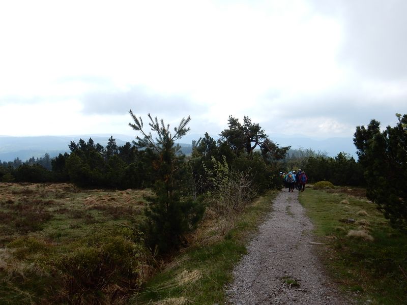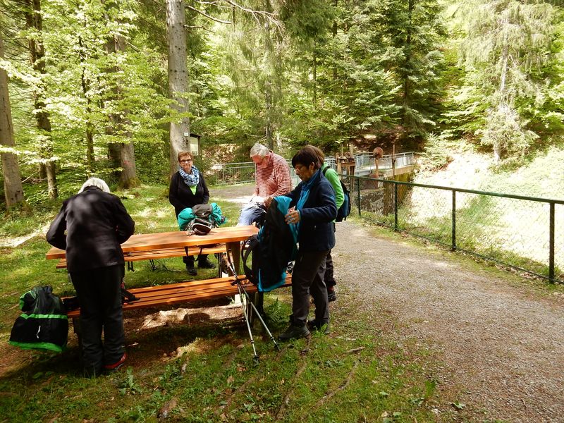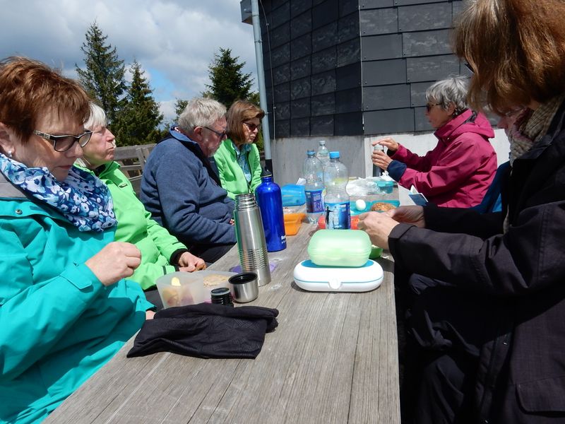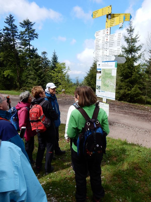 Bei anfänglich trübem Wetter ist man um 9:00 Uhr in Nagold in Fahrgemeinschaften zum Startpunkt Alexanderschanze aufgebrochen und von dort mit dem Wanderbus weiter hoch zum Schliffkopf. Aus organisatorischen Gründen wurde die Strecke in umgekehrter Richtung angegangen. Normalerweise wäre der Start an der Alexanderschanze und das Etappenziel in Allerheiligen gewesen. Mit dem Bus ist das leider nicht sinnvoll realisierbar gewesen. Es waren aber trotzdem 21 km und ca. 650 Höhenmeter zu bewältigen, dafür wurde von unserer Ursula ein Abstecher hinunter zur "Wilden Rench" eingebaut. Vom Schliffkopf ging es zuerst auf einem Teilstück des Seensteiges durch schöne Heidelandschaft und immer mit herrlichen Ausblicken in das Renchtal gespickt weiter. Der Wettergott hat es gut mit den Wandersleut gemeint und es kam immer mehr Blau zum Vorschein und die Fernsicht wurde auch immer besser! Vorbei an der Zuflucht sind alle hungrig am 921m hochgelegenen Buchkopfturm angekommen. Hier wurde gegen 13:00 Uhr die verdiente Mittagsrast eingelegt und keiner lies sich die Besteigung des 28m hohen Turmes nehmen. Ab jetzt ging es gemächlich über die Brandstraße runter bis zur Wilden Rench auf nur noch ca. 600m. Zwei putzige Salamander konnten dabei auch entdeckt und bestaunt werden. Am doch recht viel Wasser führenden idyllischen Flüsschen entlang ging es nun wieder leicht ansteigend vorbei an der Renchquelle hoch zur Alexanderschanze. Ab hier wieder in Fahrgemeinschaften heim Richtung Nagold mit Zwischenhalt in Aach. Gegen 17:00 Uhr kam man am Gasthof Waldgericht in Aach an und da die Gruppe etwas zu zeitig da war, wurde noch vor dem Lokal mit Dehnungsübungen dem Muskelkater vorgebeugt. Der herrliche Tag konnte nun mit einem leckeren Essen und erfrischenden Getränken abgerundet werden.