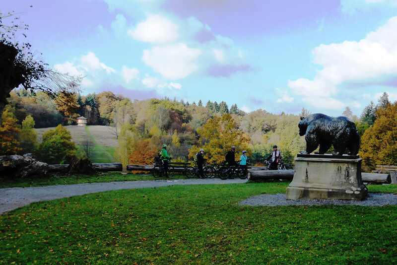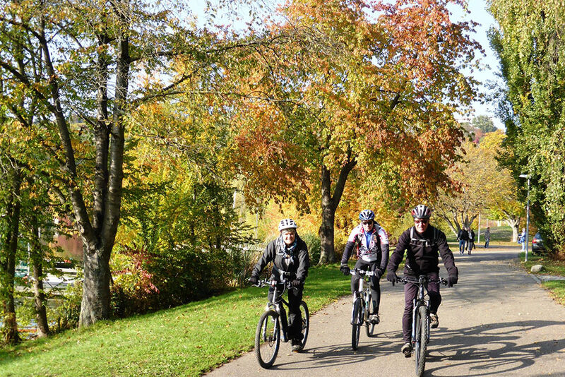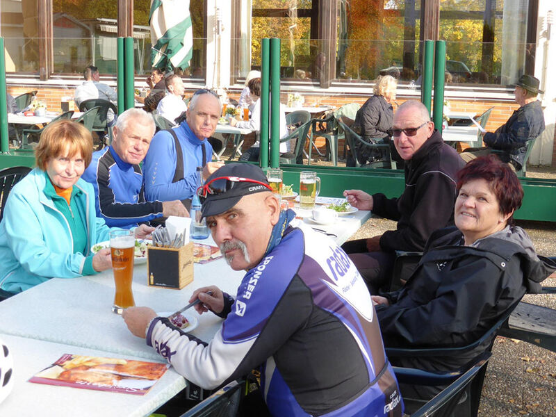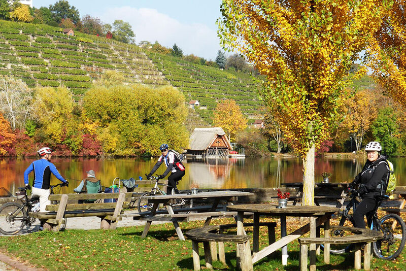 Die Panorama-Runde um und in Stuttgart passierte zahlreiche Highlight von Suttgart. Vom Katzenbachtal vorbei am Bärensee, Bärenschlössle, Schloss Solitute hinunter nach Feuerbach. Am Lemberg wurde in der warmen Sonne eine Vesper-Pause eingelegt. Durch die Weinberge der Krailenshalde ging es hinauf zum Robert-Bosch-Krankenhaus. Hier konnte die einmalige Panorama-Rundumsicht vom Remstal , Neckartal bis zum Killesberg bestaunt werden. Vom Burgholzhof die Weinberge hinunter zum Neckar. Eine ausgiebige Mittags-Einkehr gab es auf der Sonnenterrasse am Max-Eyth-See. Auf dem Neckar-Radweg ging es unter dem Zuckerberg dem Neckar entlang bis zum Cannstadter-Wasen. Und vom Schloss Rosenstein hinter der Wilhelma zum Aussichtspunkt am Pragsattel. Durch den herbstlichen Rosensteinpark mitten durch die S-21-Baustelle und den Schlossgarten. Über die Karlshöhe die Hasenbergsteige hoch. Ein schöner Abschluss bildete die Fahrt über den Blauer-Weg bzw. Blaustrümpfle-Weg. Nach 4 Stunden reine Radelzeit war nach 55km und 750 Höhenmeter der Startpunkt wieder erreicht.