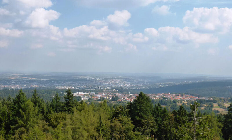 Auf der Enz-Nagold-Platte ging es über Altburg, Oberreichenbach, Ober-/Unterkollbach, Zainen, Oberlengenhardt, Schömberg, Langenbrand, Engelsbrand zur Büchelbronner Aussicht. Der dortige 25m hohe Aussichtsturm wurde bereits im Jahre 1883 errichtet und ist möglicherweise der älteste Stahlfachwerkturm der Welt. Erhaben über der Stadt Pforzheim am Zusammenfluss von Enz und Nagold bietet die Turm-Plattform eine beeindruckende Aussicht bis zum Pfälzer Wald und den Stromberg.