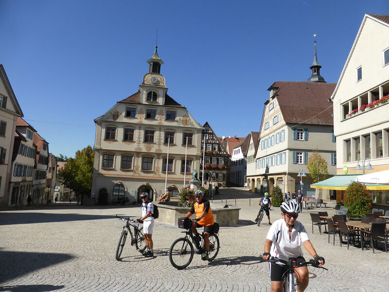 Nach einer Pause in einem Strasse-Cafe auf dem malerischen Marktplatz von Vaihingen radelte man weiter auf den Enztal-Radweg. Als weiteres Highlight ging es unter dem steilen Weinberg durch die Enz-Schlaufe bei Roßwag. In Mühlacker gab es einen kleinen Abstecher durch die Altstadt bevor man wieder Enzberg erreichte.