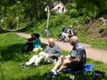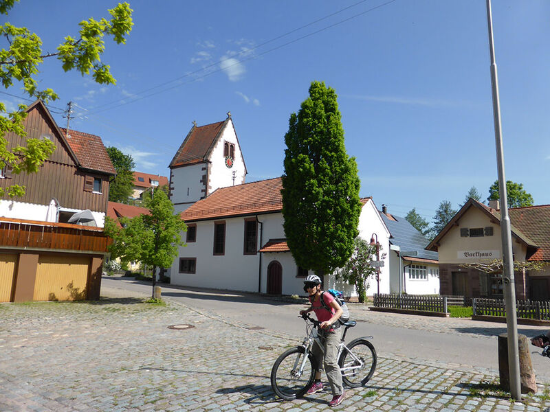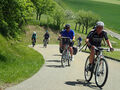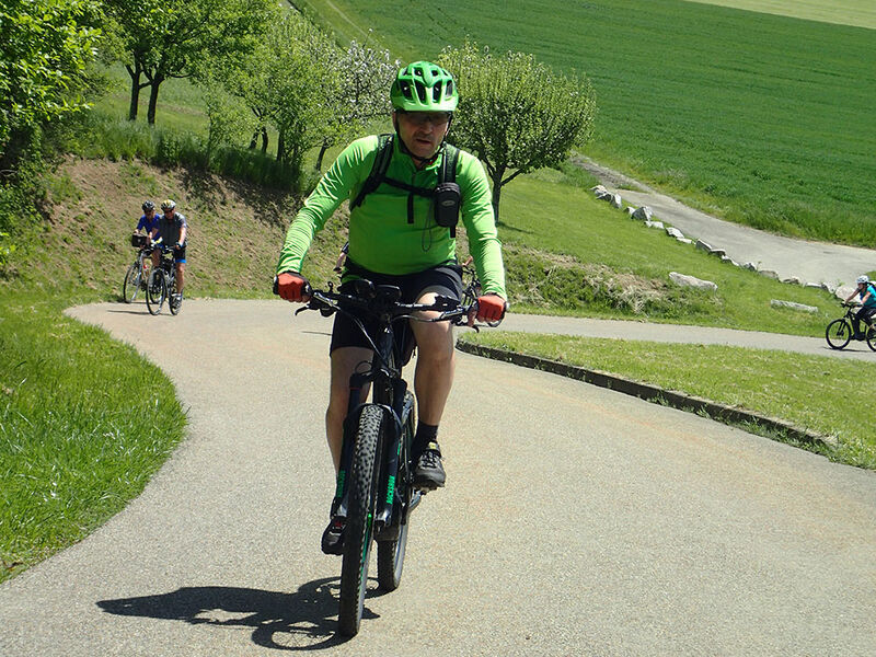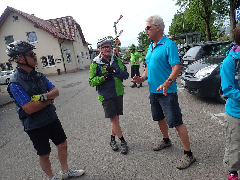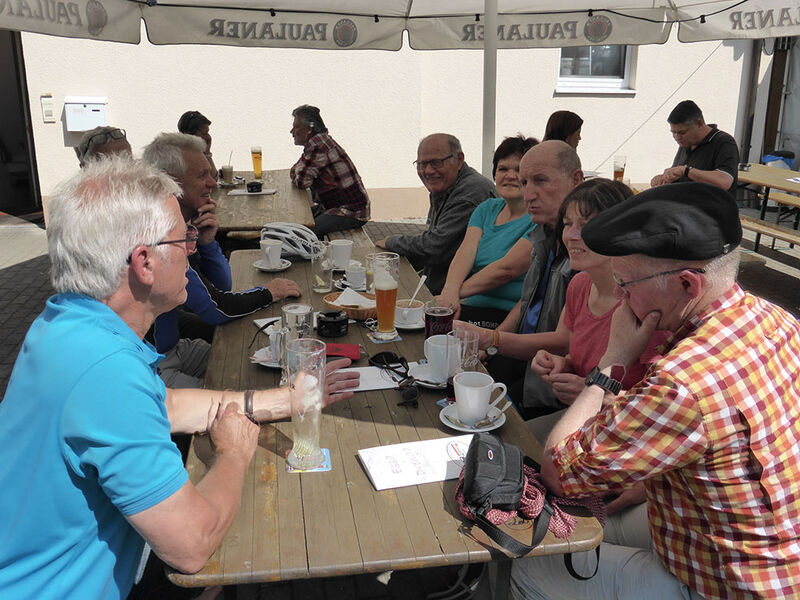 10 Radfahrer der DAV-Sektion Nagold und Bezirksgruppe Calw erkundeten die nähere Umgebung bei schönstem Frühlingswetter. Das Waldachtal und Steinachtal bot nicht nur schöne Landschaft und Natur sondern auch einige kulturhistorische Hintergrundinformationen. Nach einem Stopp an dem alten Jüdischen Friedhof ging es das Naturschutzgebiet Waldachtal weiter aufwärts vorbei am Schloss in Unterschwandorf nach Oberschwandorf. Unter dem gründen Südhang des Kapf durch das beschauliche Beihingen war bald Unterwaldach erreicht. In Vesperweiler wurde die alte Mönchhof-Sägemühle bestaunt. In Lützenhardt war die Strasse mit einem hunderte Meter langen Blumenteppich für den Fronleichnams-Umzug geschmückt. Die meisten Radler aus den überwiegend Evangelischen Gegend sahen so etwas zum ersten Mal. Am Breitenbachsee wurde eine Vesperpause eingelegt. Dabei gab es kulturgeschichtliche Informationen über die Jenischen Lützenhardter. Den hausierenden Bürstenbindern wurde im letzten Jahr sogar ein Denkmal gesetzt in Form einer Bürstenmacherstatue. Leider war an dem Tag das Heimatmuseum mit der entsprechend passenden Sammlung von Pius Wittich geschlossen. In Tumlingen ging es steiler hinauf zum höchsten Punkt der Tour. Auf dem Gipfel der Erddeponie genoss man eine herrliche Weitsicht vom Gäu bis zum Albtrauf. Vom Naturschutzgebiet bei Grünmettstetten ging es zügig das Steinachtal hinunter. Durch Talheim, Schietingen und Güntringen war bald wieder Nagold erreicht. Nach 50 km und 600 Höhenmeter konnte bei der Schluss-Einkehr der Kaffee und das Bier auf der Sonnenterrasse genossen werden.