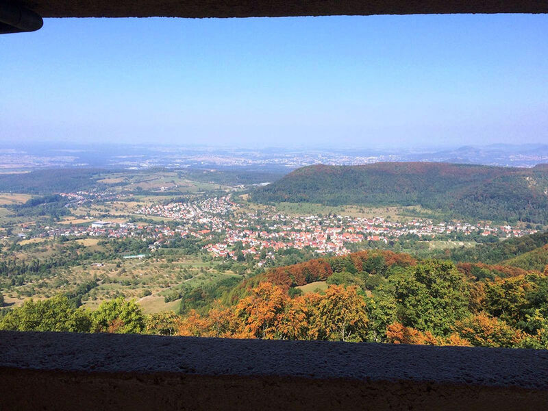 Gleich zu Beginn galt es auf den ersten 10 km den Albaufstieg zu bewältigen. Ab Talheim ging es im Schatten das Seebachtal hinauf nach Willmandingen auf die Alb. Die Mischwälder zeigten sich bereits in ihrer bunten Herbstfärbung. Über die Hochfläche der Reutlinger-Alb ging es über Sonnenbühl hinüber zum Schloss Lichtenstein. Wie im Bilderbuch zeigte sich der Schlosshof mit seinen Panorama-Aussichten über das Echaztal. Nach der Biergarten-Einkehr im Alten Forsthaus Lichtenstein radelte man über Genkingen hinüber und hinauf auf den 869m hohen Rossberg. Vom Aussichtsturm lies die feuchte Luft nur eine etwas eingeschränkte Fernsicht zu. Dafür war es im Biergarten des Wanderheim Rossberg desto schöner. Nach einem Plattfuß rollte man durch Öschingen wieder hinunter nach Mössingen. Knapp 50 km mit 750 Höhenmeter Auffahrt zeigte der Radcomputer bei einem Durchschnitts-Tempo von 16 km/h.