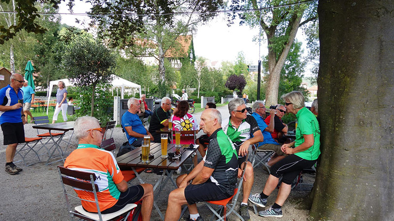 Nach 55 km mit 650 Höhenmetern konnte hier die verdiente und ausgiebige Schluss-Einkehr im Biergarten PortoNeckar“ direkt am Neckarstand genossen werden.
