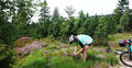 Dann zog sich der Schotterweg am Skihang hinauf auf den Seekopf. In über 1000 m Höhe führte der Weg durch die Tundra ähnliche Vegetation mit schönen Weitblicken und Heidelbeer-Ernte hinüber zur Darmstädter-Hütte. Hier gab es eine ausgiebige Vesper-Pause .