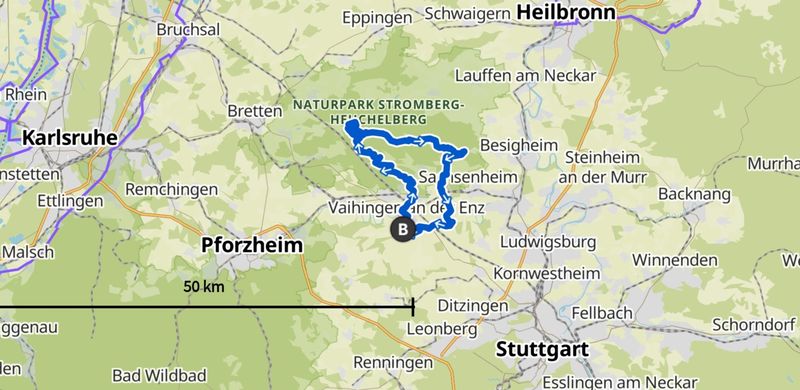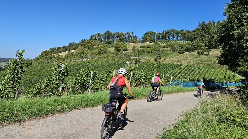 Ab Oberriexingen ging es auf dem Enztalradweg der Enz entlang. Der letzte Weinberg, der Kornberg wurde über Enzweihingen durchquert.