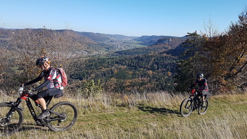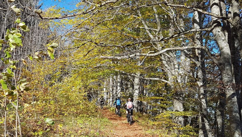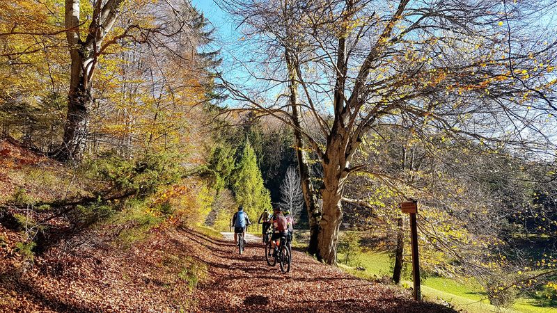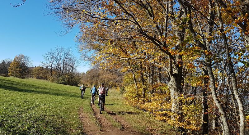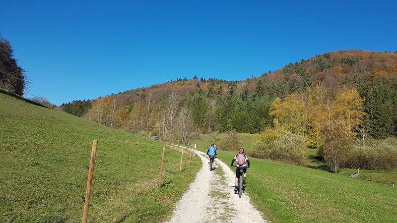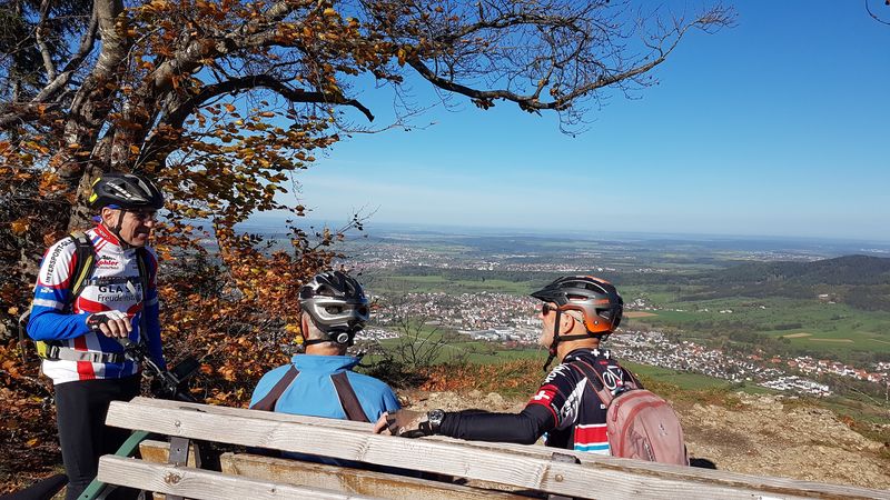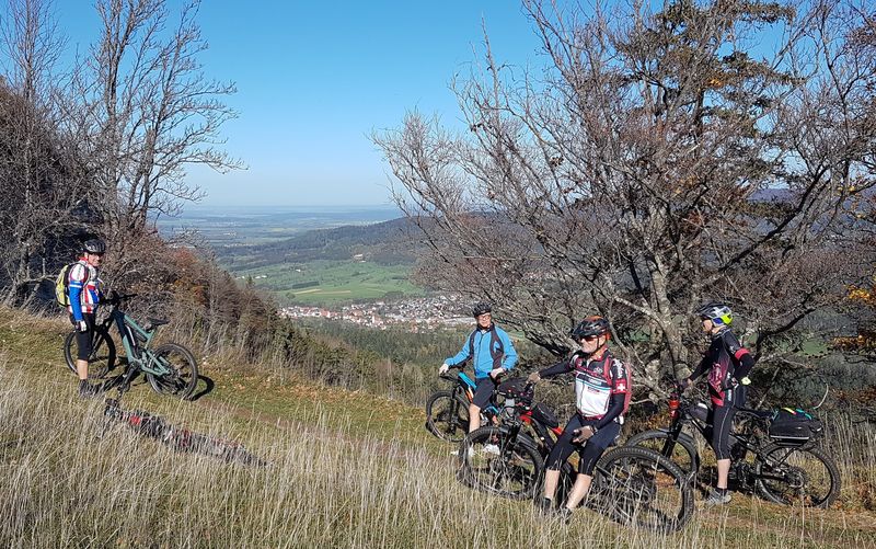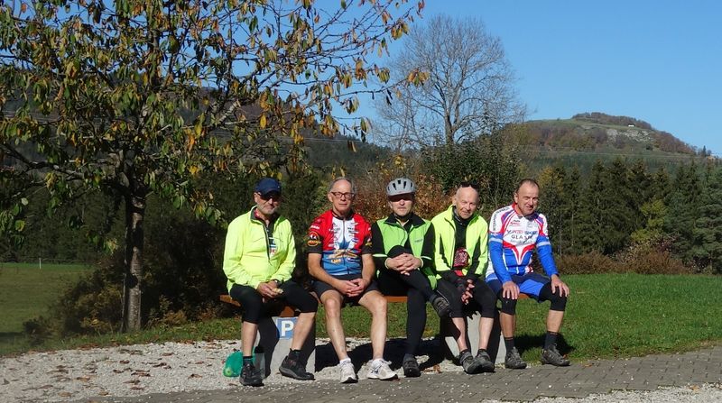 Fünf unserer E-Mountainbike-Senioren nutzen am 27. Oktober 2022 das spätsommerliche Wetter mit Temperaturen bis 21°C zu einer Tour auf die Westalb.