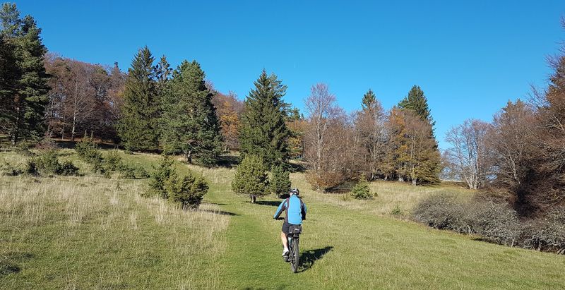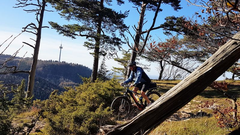 Auf den Singletrails dicht am Albtrauf entlang ging es hinüber zum Lochenpass. Der Lochenstein wurde zu Fuß erklommen. Beim Gespaltenen-Fels auf dem Schafberg wurden die 1.000 m ü.NN erreicht.