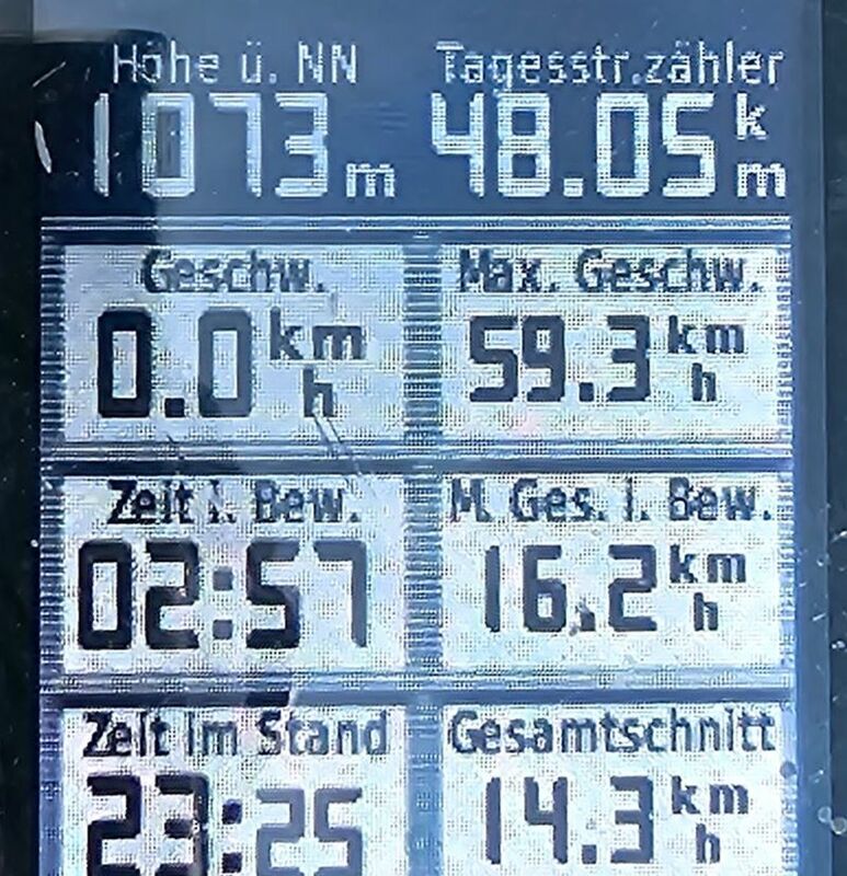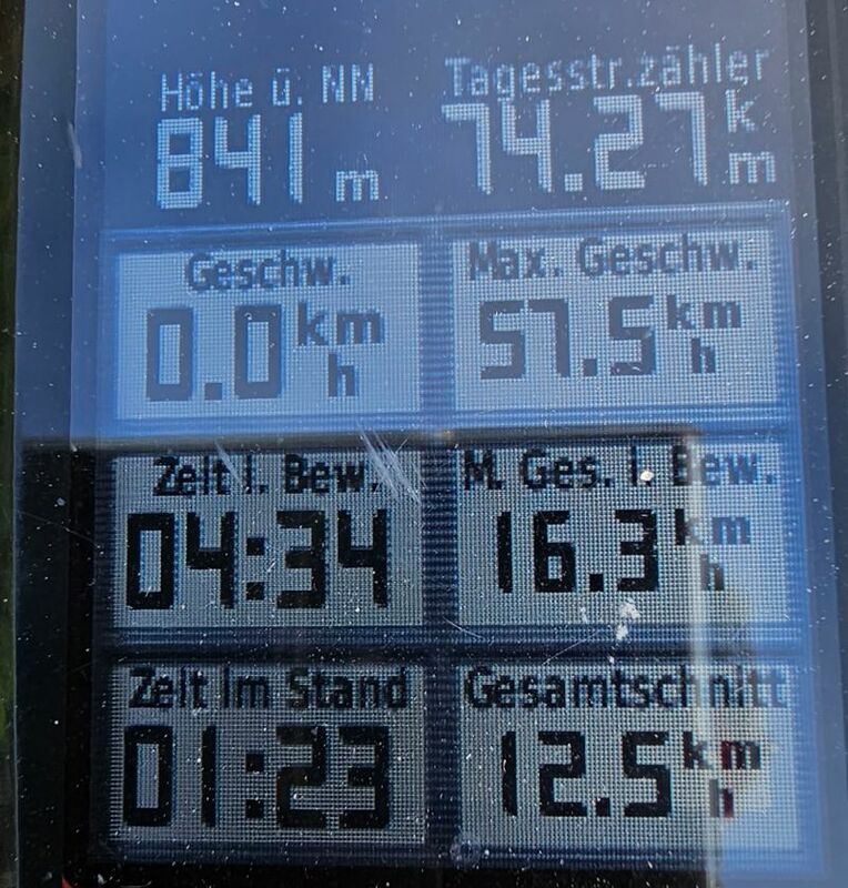 An 4 Schönwetter-Tourentagen hintereinander (26.-29.6.2023) wurden jeweils bis 80 km mit bis zu 1.500 Höhenmeter geradelt: