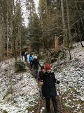 Leider war an den Aussichtspunkten der AugenBlick-Runde, der wir auf weite Strecke folgten, relativ wenig Aussicht, der Himmel war eher Grau in Grau. Immerhin blieb es trocken, der Schneeregen setzte erst während unserer Schlusseinkehr im neu eröffneten Cafe Saur ein.
