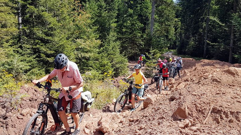 Von dort ging es durch meist unbekannte Wald-Orte wie Schernbach, Göttelfingen, Morgental, hinauf nach Fünfbronn. Durch Erdauffüll-Maßnahmen des Mühlhandensträssles mussten die Räder über unwegsame Erd- und Steinhaufen geschoben werden.