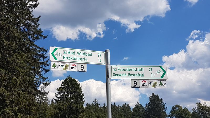 Im Oberen Wald zwischen Enz- und Nagoldursprung wurden keine 30°C erreicht. Und bei dem Fahrtwind im schattigen Wald war es sehr angenehm.