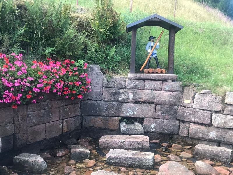 Eine Vesperpause wurde am Enzursprung in Gompelscheuer eingelegt. Trotz des sehr trockenen Sommers mit vielen ausgetrockneten Bächen spendete die Enzquelle noch frisches kühles Wasser.
