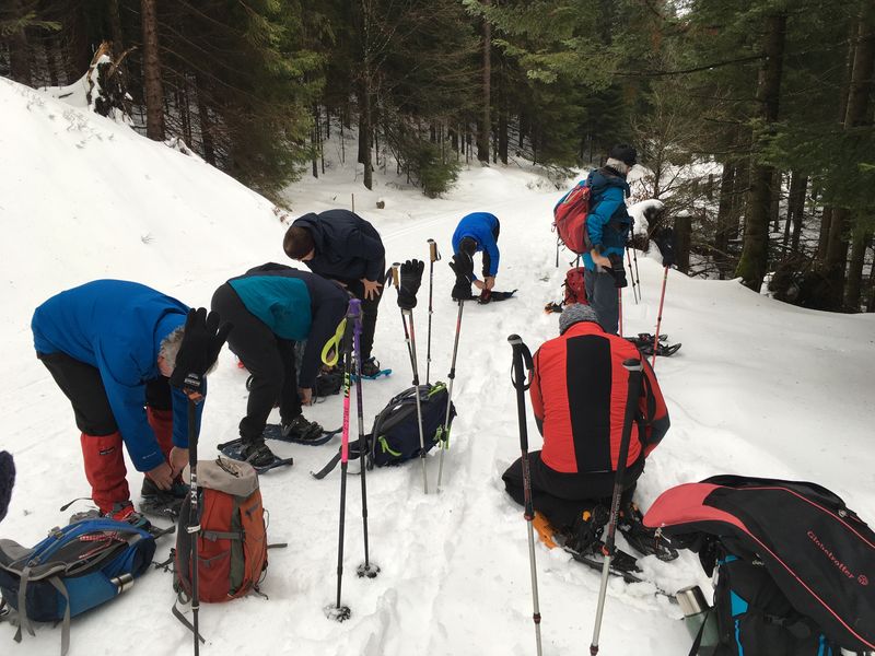 Eine Gruppe von 10 Personen traf sich zu einer Schneeschuhtour im Nordschwarzwald. Startpunkt war Hinterlangenbach, in einem Seitental des Murgtals.