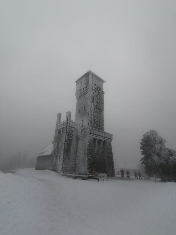 Der Aufstieg zur Hornisgrinde erfolgte über den Dreifürstenstein. Auf der Hochfläche tobte der Wind und alles lag im Nebel.