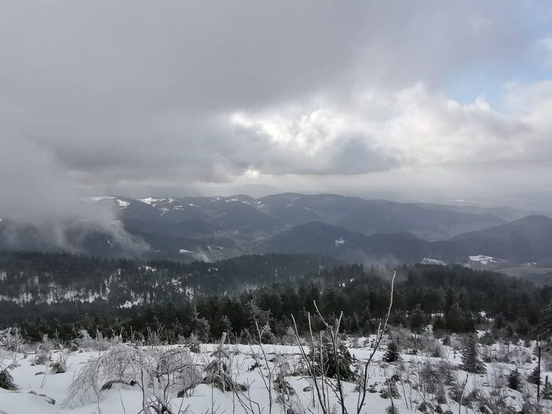 Der für die Nacht angesagte Neuschnee in den höheren Lagen war leider ausgeblieben, statt dessen ist starker Regen gefallen. Somit war beim Startpunkt in 700 Meter Höhe die Schneedecke doch schon recht dünn.