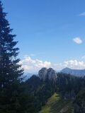 Sonntags war zunächst der Brunnenkopf (1.718 m) als Ziel angesetzt. Startpunkt war hier das Schloss Linderhof im Graswangtal. Mit schönen Blicken auf das Schloss zog sich der gut ausgebaute Weg nach oben. Glücklicherweise waren Wanderer mit einem jungen Hund unterwegs. Kinder und Hund haben sich diesen ausgetretenen Weg spielerisch bis zum Brunnenkopfhaus gejagt. Die letzten Meter zum Gipfel waren auch hier drahtseilversichert und leicht ausgesetzt.