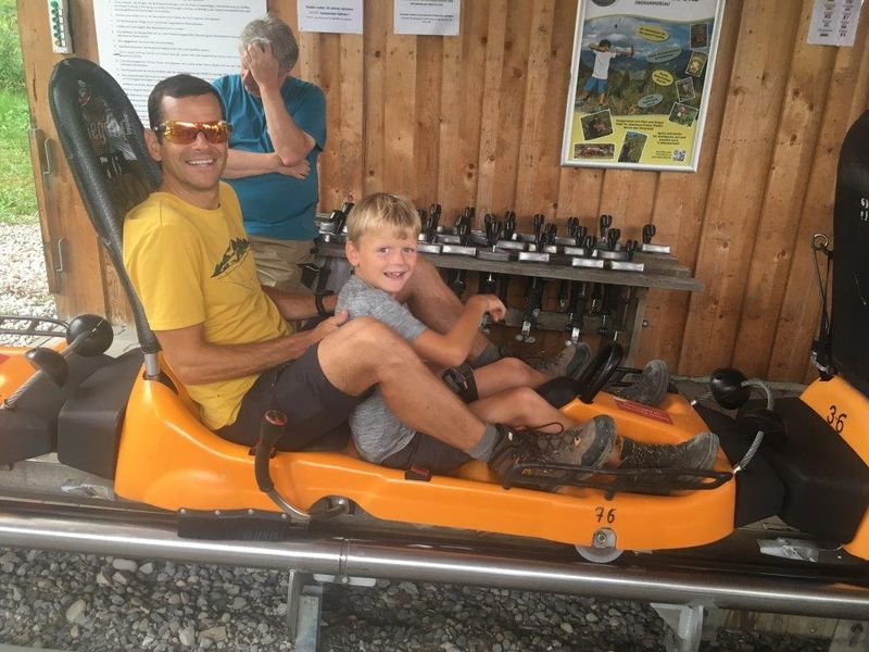 Nachdem wir recht zügig unterwegs waren, konnten wir spontan die ursprüngliche Tour abändern. Anstelle eines direkten Abstiegs zum Ausgangsort zogen wir auf die gegenüberliegende Seite der Ammergauer Berge zum Pürschlinghaus (August-Schuster-Haus). Von dort ging es nach kurzer Rast zur Bergstation des Alpin Coaster am Kolbensattel. Zur Belohnung eines langen Bergtags konnten wir dadurch den Abstieg beschleunigen und pünktlich zum Abendessen in der Jugendherberge erscheinen.