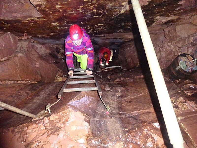 Dieses Jahr besuchte die Familiengruppe des Nagolder Alpenvereins, das Bergwerk in Neubulach. In klassischer Höhlenausrüstung, sind wir in den unteren Stollen eingefahren. Unter fachkundiger Führung ging es ca 400m in einen wasserführenden Stollen. Danach haben wir über Leitern die obenliegenden Stollen erklommen und erkundet. Die Erklärungen unseres Führers über Enstehung von Schichtfugen, Quarzeinlagerungen, Erzeinlagerungen konnten an den vorherschenden Gesteinsschichten nachvollzogen werden. Auch die verschiedenen Vortriebsmethoden konnten wir an den Stollenwänden erkennen. Beim Rückzug sind wir noch den Wasserstollen bis ans Ende des zugänglichen Teils gefolgt. Das Wasser stand uns bis ca 1 cm unterm Stiefelschaft. Nun waren wir etwa 500m im Berg und 120 m unter Neubulach. Nach 2 Stunden Untertage, hatte uns das Tageslicht wieder. Beim Rückweg haben wir noch das Pochwerk besichtigt, mit dem das gewonnene Erz kleingeschlagen wurde.