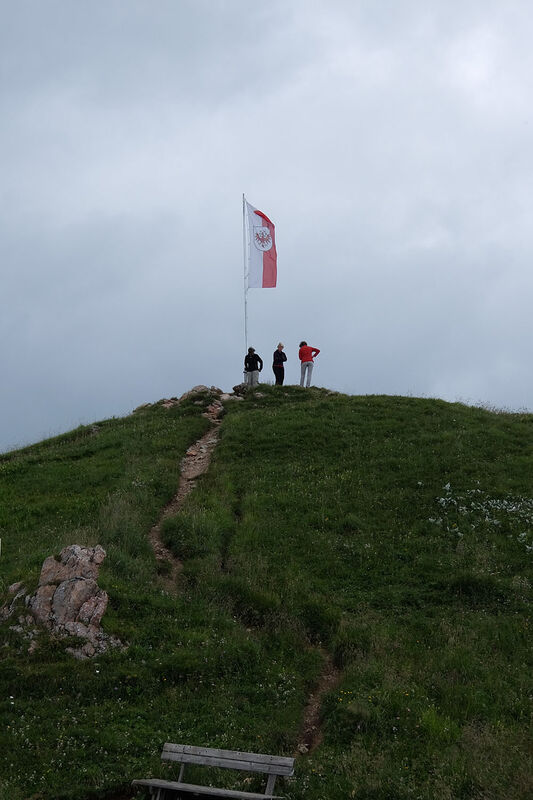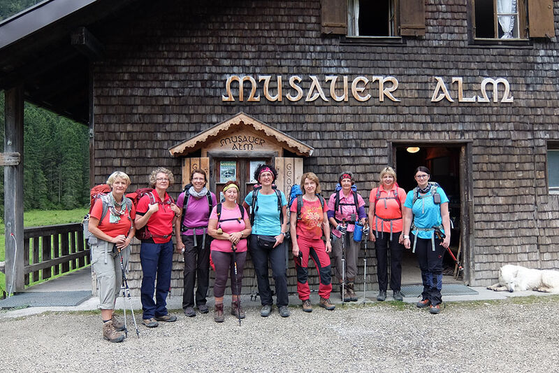 Von der Bergstation starteten wir zu unserem ersten Etappenziel, der Musauer Alm. Auf schmalen und stetig ansteigenden Bergpfaden erreichten wir das Sabajoch auf 1.860 m, für heute unser höchster Punkt. Vorbei an grasenden und faul in der Sonne liegenden Jungviechern erreichten wir am frühen Abend die Alm. Da wir noch etwas Zeit hatten, genossen wir noch ein kühlendes Fußbad in naheliegenden Bach und ein wohlverdientes Radler auf der Sonnenterasse. Bei heißen Temperaturen muss schließlich von innen und außen gekühlt werden.