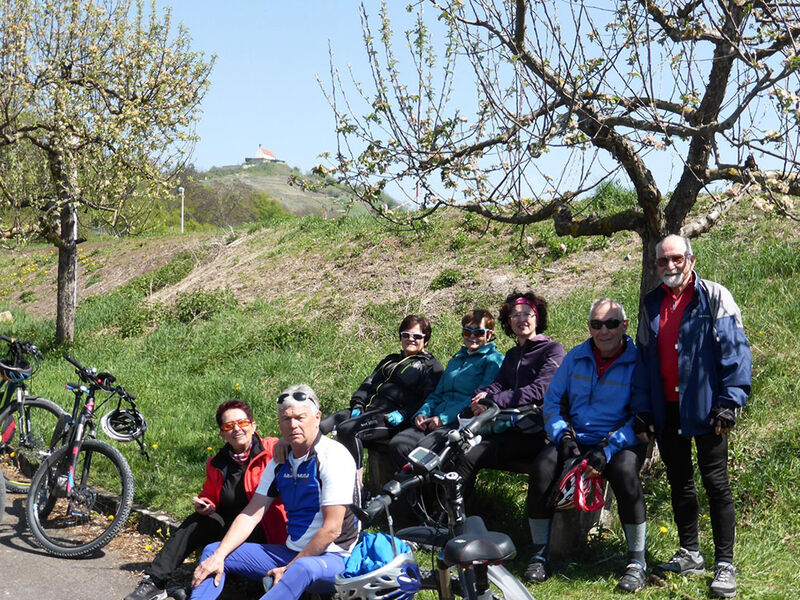 Weiter ging die Tour hinüber nach Reusten und ab hier der Ammer entlang nach Pfäffingen. In Wurmlingen ersparten sich einige (unerklärlicherweise besonders ebiker) die Auffahrt hinauf zur Wurmlinger Kapelle. Der gedenkwürdige Punkt ist immer wieder ein besonderes Highlight. Ehrfurchtsvoll steht man unter dem Gedicht von Ludwig Uhland: „Droben stehend die Kapelle …..“ Insbesondere bei diesem schönen Wetter mit der Rundum-Panorama-Aussicht in unser „schönes Ländle“.