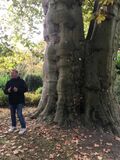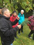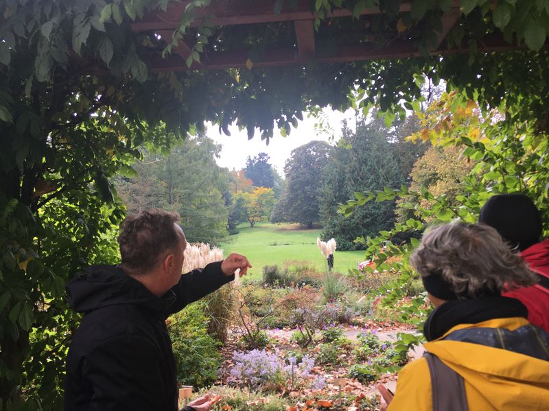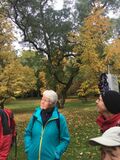 Der erste Anlaufpunkt, und zugleich ein Höhepunkt des Tages, war eine zweistündige Führung durch das Arboretum der Hohenheimer Gärten. Herr Koch, der viele Jahre als Gärtnermeister dort gewirkt hatte, jetzt im Ruhestand, stellte uns mit großem Fachwissen und mit Herzblut verschiedenste Bäume in „seinen“ Gärten so richtig einzeln vor. Einige dieser Bäume gehören zu den ältesten und größten in Baden-Württemberg oder sogar in Deutschland, und sie stammen aus unterschiedlichsten Ländern und Kontinenten. Aber es wurden auch immer wieder neue Exoten angepflanzt, die sich kräftig entwickelten. Nebenher sensibilisierte er uns für landschaftsgärtnerische Aspekte, indem er uns auf besondere Sichtachsen aufmerksam machte. Zugleich ließ er eine Menge Geschichte der Hohenheimer und Württembergs aus der Zeit von 1776 und danach lebendig werden.