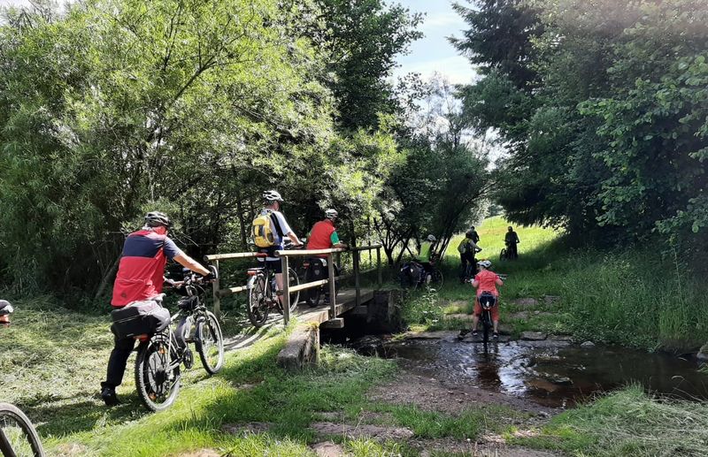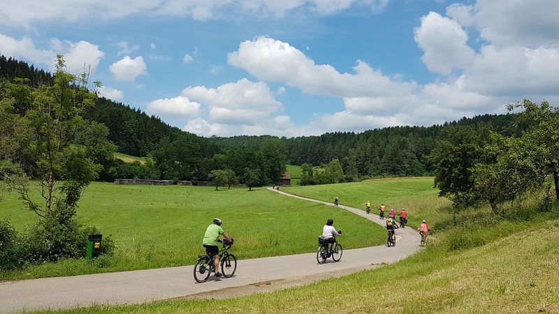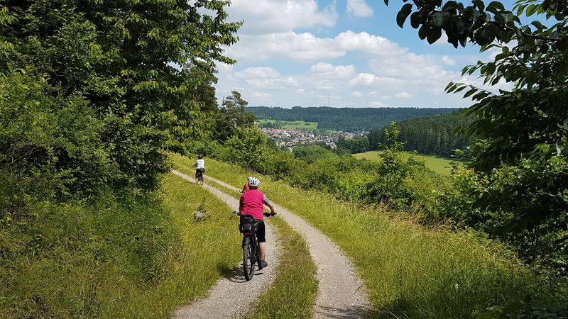 Es wurde Zeit, wieder aufzubrechen. Die Tour führte weiter über Aach, Grüntal, Ober- und Untermusbach nach Frutenhof. Eine kurze technisch anspruchsvolle Singletrail-Strecke erforderte Mountainbike-Fahrtechnik bzw. zwang auch einige zum Schieben. Aber gerade solche kleinen Ereignisse machen unsere Radausfahrten zu einem unvergesslichen Abenteuer.