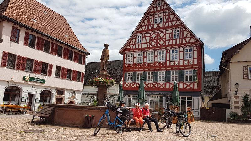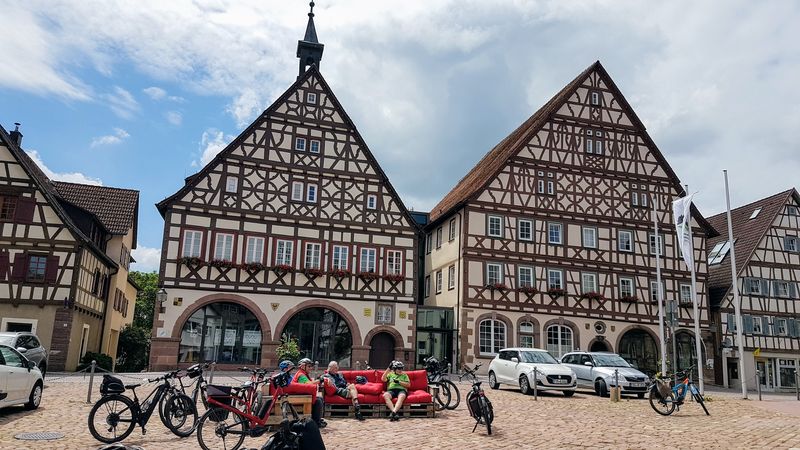 In rasanter Fahrt ging es über Lombach hinunter nach Glatten im Glatttal. Die Auffahrt nach Dornstetten gestaltete sich dank der aussichtsreichen Serpentinen kurzweilig. Mitten auf dem historischen Marktplatz lud ein bequemes Sofa wieder zu einer ausgiebigen Rast ein. Ein sehr geselliger und gesprächiger Alt-Dornstetter berichtete über seine Stadtgeschichte und lud alle zu einem von ihm präsentierten Live-Orgel-Konzert in die Stadtkirche ein. Sogar das Straßen-Cafe öffnete und bot einen Cappuchino.