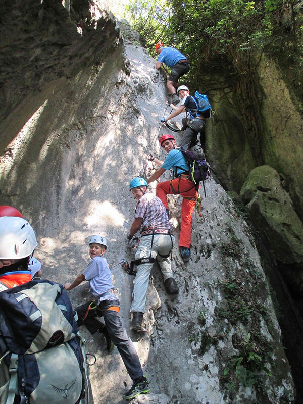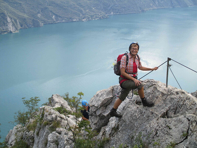 In den folgenden Tagen hatten die 36 Teilnehmer dann täglich die Qual der Wahl, an welchen der angebotenen Aktivitäten sie teilnehmen wollten. Die Kletterer waren in den verschiedenen Klettergebieten unterwegs, dabei konnte man teilweise direkt vom Fels in den See springen. Höhepunkt waren die Mehrseillängen-Touren über 450m an den Sonnenplatten bei Arco. Für die Liebhaber von Klettersteigen hatte Stefan Katz eine Reihe von „Via ferrata´s“ in unterschiedlichen Schwierigkeitsstufen ausgesucht. Für die Wanderer bot Ursula Trunte sportlichere Touren mit entsprechenden Höhenunterschieden an, während Naturschutz-Referentin Sabine Gottwald und Michaela Katz kürzere Wanderungen mit Schwerpunkt Flora und Fauna anboten. Mit dem Passo Tremalzo überwanden die Radler mit ihren Mountain-Bikes eine der bekanntesten und aussichtsreichsten Mountainbike-Strecken.