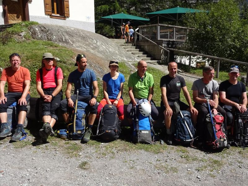 Das zeigte sich bereits beim Hüttenzustieg, 1400 steile Höhenmeter von Bourg-St-Pierre hinauf zur Cabane de Valsorey gehen ganz schön auf Pumpe und Knochen. Aber die Mühen werden oben reich belohnt, die Hütte steht in großartiger Aussichtslage gegenüber der gesamten Mont-Blanc Gruppe.