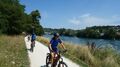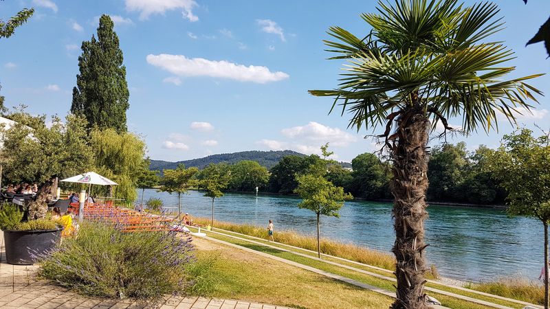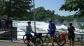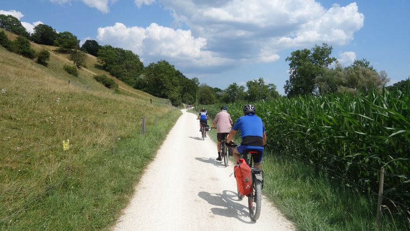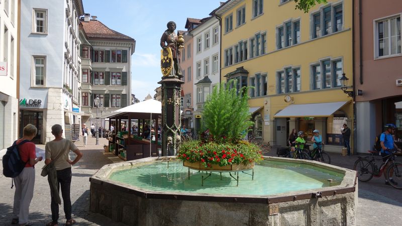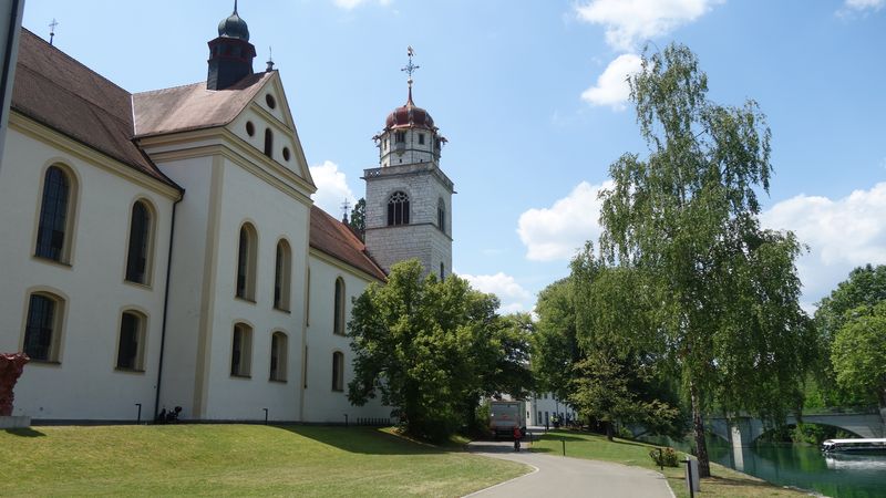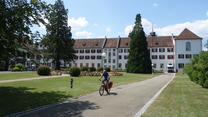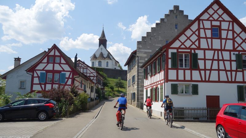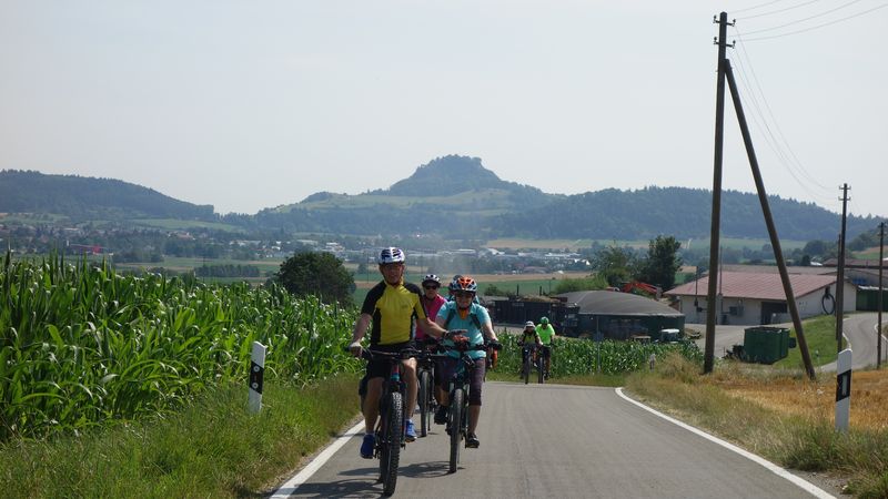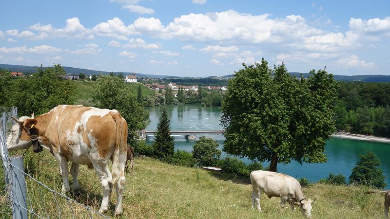 16 Teilnehmer des Alpenvereins Calw und Nagold führte der Tourenleiter Roland Kling am 18.7.2019 durch das Hegau und Schaffhauserland. Von Hilzingen unter dem Hohentwiel ging es über die (grüne) Grenze in die Schweiz nach Thayngen und Schaffhausen. Durch die schöne historische Altstadt von Schaffhausen wurden die Räder geschoben. Eine Vesperpause gab es an dem beeindruckenden Rheinfall, dem ersten Highlight der Tour. Nach Jestetten (D)wurde wieder die Grenze und der Rhein über die schöne, mehrere hundert Jahre alte Holzbrücke auf die Halbinsel Rheinau überquert. Ein weiteres Highlight war das ehemalige Kloster auf der dortigen Rheininsel. Rheinaufwärts ging es immer dem Rhein entlang an Schaffhausen vorbei durch die Deutsche Enklave Büsingen nach Gailingen am Hochrhein. Hier wurde in dem Rheinstrandbad eine längere Mittags- und Badepause eingelegt. Bei 22°C Wassertemperatur eine herrliche Erfrischung. Zudem ist es immer wieder ein besonderes Erlebnis sich beim Baden von der enormen Wasserkraft des Rheines Flussabwärts treiben zu lassen. Mit dem Rad war dann über Ramsen und Gottmardingen nach 70 km bald wieder der Ausgangsort Hilzingen erreicht.
