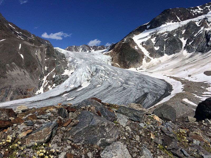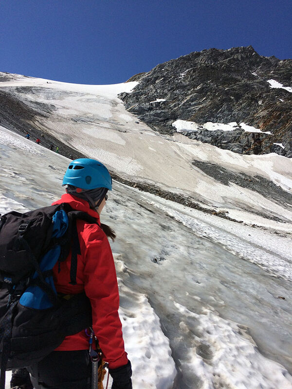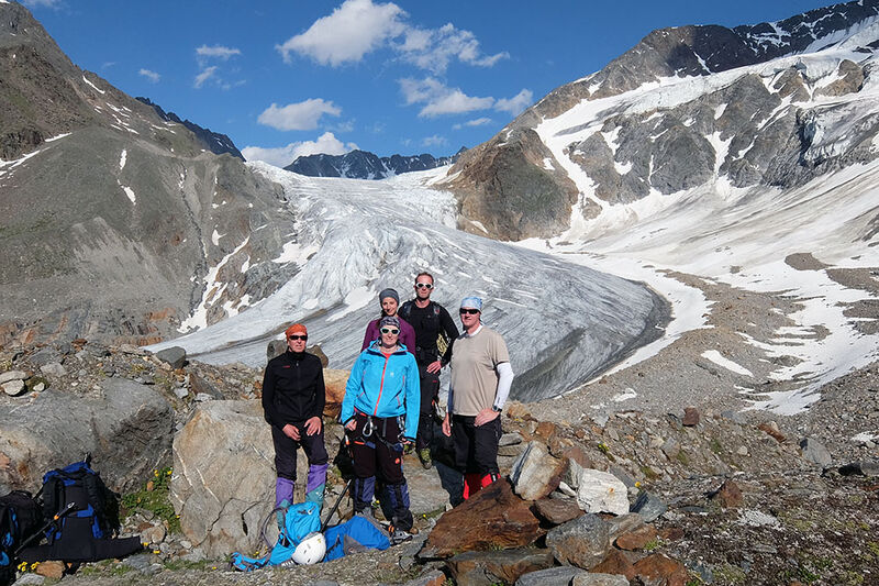 An diesem Morgen ging es früher los. Der Weg auf die Nördliche Sexegertenspitze ist lang und hoch. Die Teilnehmer hatten alles perfekt vorbereitet und so ging es problemlos über diverse Steilstufen, Gletscher und zuletzt über leichten Fels auf den Gipfel dieses wunderschönen 3.350 Meter hohen Berges in Sichtweite des Taschachhauses. Der Abstieg gestaltete sich unkompliziert und schnell. Nach 7 Stunden waren wir wieder auf unserer Hütte und abschließend fand noch eine Unterrichtseinheit zum Thema Naturschutz statt.