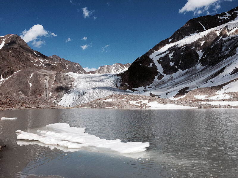 Der nächste Morgen begann gut gelaunt am Frühstücksbuffett. Das war auch nötig, sollte doch an diesem Tag der Pitztaler Urkund umrundet werden. Um 8.00 Uhr ging es los. Steten Schrittes zogen die sechs zum Beginn des Sexegertenferner. Auf dem Weg dort hin lernten sie wie man sich im Firn korrekt bewegt und vor allem wie man einen Sturz im Firn abfangen kann. Das Eisschild des Sexegertenferner wurde seitlich mit einem Fixseil überwunden. Danach ging es hoch hinaus zum Urkundsattel. Nach einer bescheidenen Brotzeit übte man die Spaltenbergung am allseits bekannten Windkolk. Als alle wieder aus ihren Spalten gezogen waren war es Zeit den Rückweg zur Hütte anzutreten, dort wartete schon das Abendessen. Es ging noch einige steile Firnrinnen am Fixseil hinunter und dann an der Uferpromenade des Gletschersees entlang über den Gletschersteig zur Hütte. Am Abend folgten noch theoretische Inhalte zur Gletscherkunde und zum Umgang mit Karte und Kompass.