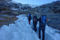 Früh am Freitag Morgen ging es am Treffpunkt „Blaue Lagune“ los. Ziel des heutigen Tages war es die ca. 6 Stunden lange Fahrt und den 700 Höhenmeter Anstieg zur Hütte zu bewältigen. Beides schaffte die Gruppe ohne weitere Probleme und so konnte am Abend auf der Hütte noch eine kleine Lehreinheit in Spaltenbergung stattfinden.